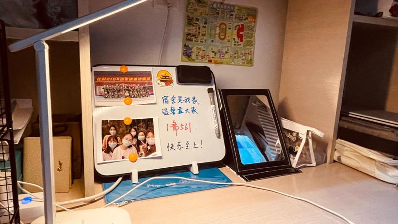 宿舍内摆放整齐的书法用具、精心装扮的宿舍门、贴心励志的标语充分地展示了同学们积极向上的生活态度,得到评委的一致好评。