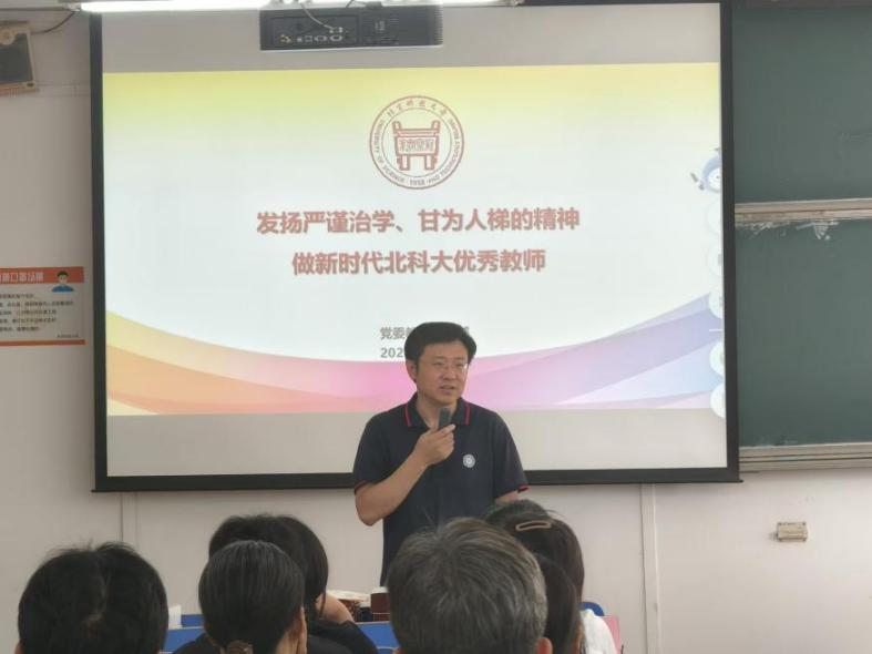 为不断加强师德师风建设,提升教师专业素养,着力塑造一支追求教育家精神的“四有好老师”队伍,国产视频 于2024年9月12日下午在文法楼301教室召开师德师风专题教育大会。学院特别邀请到学校党委教师工作部部长张俊燕做以《发扬严谨治学、甘为人梯的精神 做新时代北科大优秀教师》为主题的讲座,学院全体教职员工参加了本次学习大会,会议由党委书记赵宝永主持。