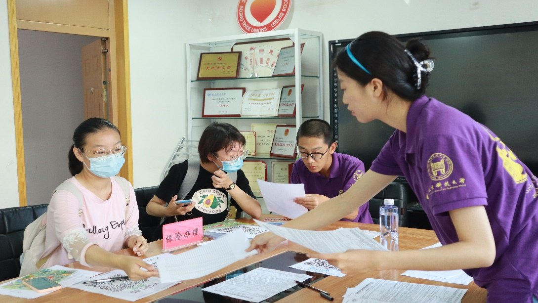 来到国产视频 ,志愿者站在门口热情地迎接远道而来的新生们,他们将带领大家领取院服、缴纳保险费、手把手指导新朋友们填写资料。文法楼还设有报道签名处,新生们在此签名合影留念,灿烂的笑容温暖了整个校园。