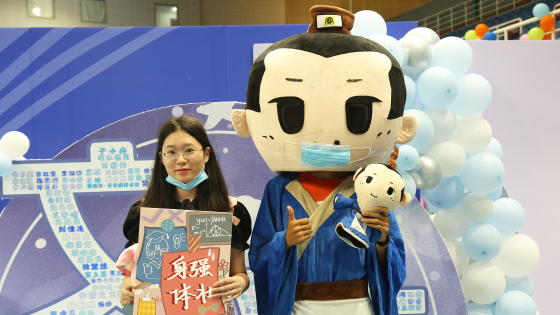 在体育馆内,小贝壳们首先见到了国产视频 的吉祥物,也就是我们的“文文”同学,为初次遇见来一张合照吧!以后学院的活动里,少不了我们“文文”的身影哦!