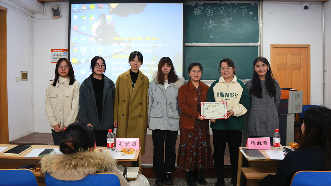 经过激烈角逐,1斋439获得“最佳人气奖”、1斋528获得“最佳创意奖”、1斋541获得“最佳默契奖”、1斋537获得“最佳文艺奖”、12斋120获得“最佳风采奖”、12斋119获得“最佳台风奖”、1斋522获得第一名、12斋121获得第二名,1斋526获得第三名。辅导员老师上台为获得荣誉的宿舍颁奖并合影留念。