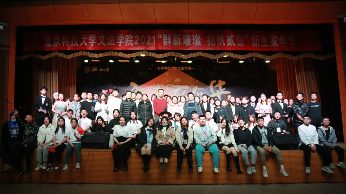 至此,北京科技大学国产视频 第九届文法家年华暨2021级新生迎新晚会圆满结束,领导嘉宾与全体演职人员合影留念。
