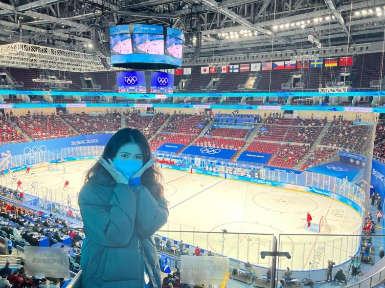 很荣幸能够参与到北京冬奥这场冰雪盛会当中,作为五棵松体育中心的赛事服务志愿者,冬奥会的“门面担当”,我们用“爱笑的眼睛”迎接每一位观众,用热情温暖寒冬。很幸运在现场见证了中国女子冰球队的胜利,这让我更加坚信,如果奇迹有颜色,那一定是中国红,我也会带着这份力量继续投入未来的学习、工作和生活当中,继续贡献自己的青春力量!