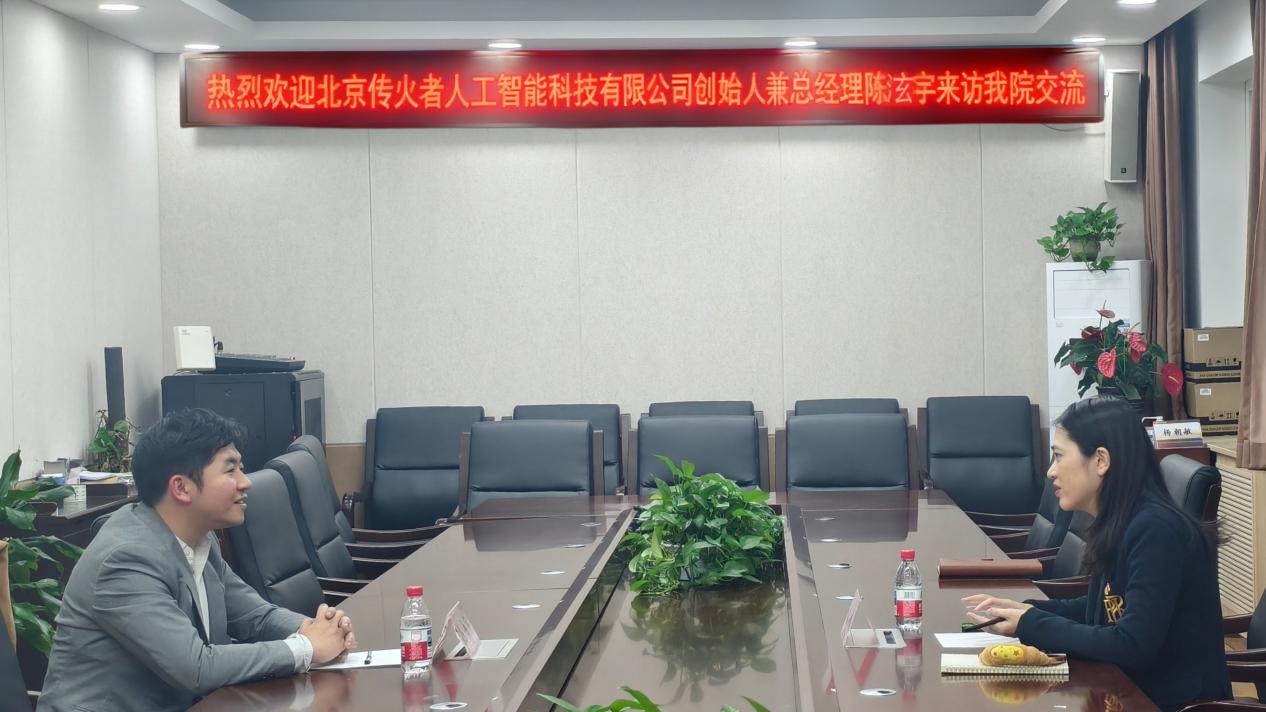 11月26日晚,北京传火者人工智能科技有限公司创始人兼总经理陈泫宇到访国产视频 ,与党委副书记兼副院长李娟就学生实习实践合作、创新创业竞赛赋能等事宜座谈。