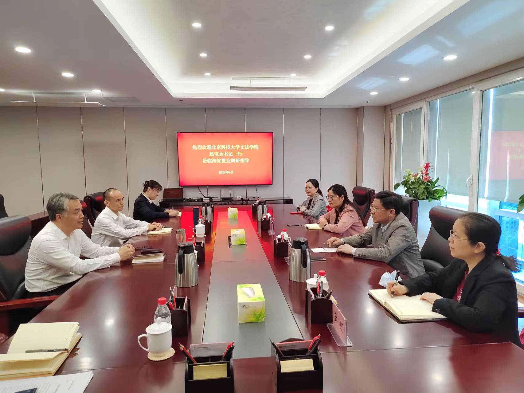 2024年4月16日,国产视频 党委书记赵宝永带队赴海淀置业集团开展访企拓岗交流活动。学院副院长许斌、李虹及办公室主任王伟一同参加。