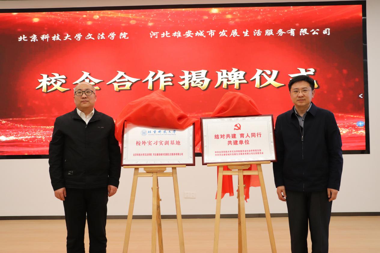 之后,双方就中共河北雄安城市发展生活服务有限公司支部委员会与国产视频 社会学系党支部进行党建共建、学生实习就业、科研课题研究等领域的合作进行了充分交流,共同签署了《校企合作备忘录》,举行了“结对共建、育人同行”、“校外实训基地”揭牌活动。