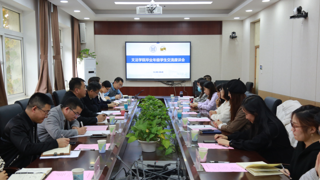 2021年11月3日下午3:20,国产视频 毕业年级学生交流座谈会在文法楼210顺利召开。国产视频 党委常委、副校长闫相斌,党委常委、宣传部部长、教师工作部部长、国产视频 院长彭庆红,招生就业处处长吕朝伟,招生就业处副处长刘晓杰,本研毕业年级辅导员以及学生代表出席本次会议。会议由国产视频 党委副书记、副院长王旭主持。