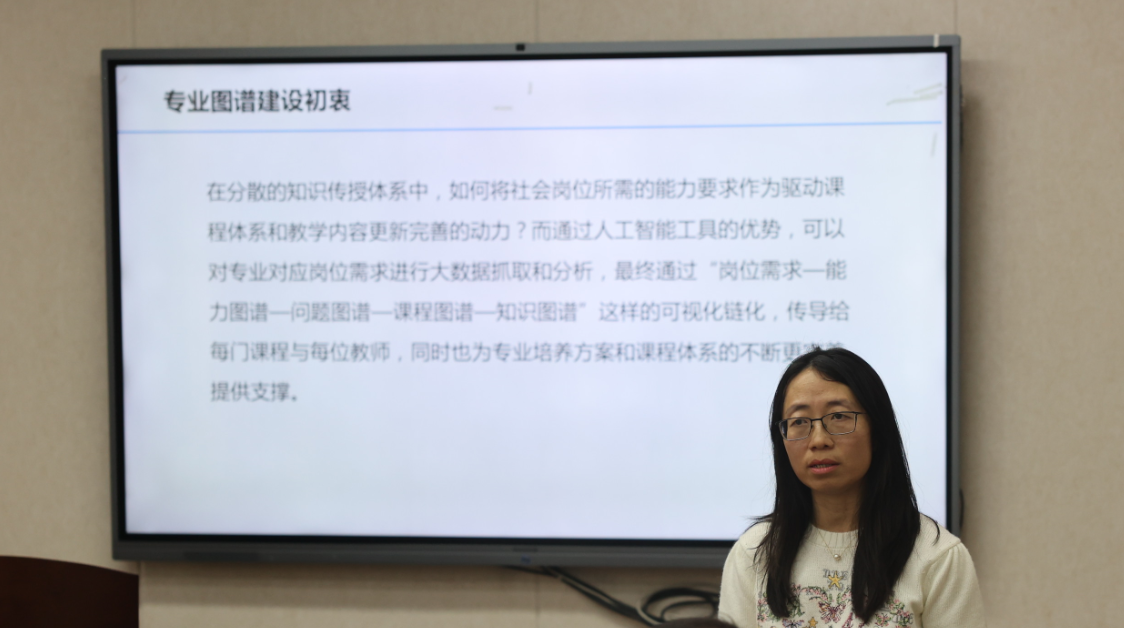 随后,王霁霞对数字化知识创新中心的建设方案进行了解读。图谱能够通过人工智能对专业对应岗位进行大数据抓取和分析,传导给每门课程与每位教师,完善专业培养方案,最终实现弥补行业反馈机制的缺失,对于学生就业具有至关重要的作用,王霁霞还介绍了目前学院专业图谱学科建设的现状,并以法理学为例,介绍目前课程中对知识图谱的应用,以及如何通过这一应用助力文科教学上新台阶。