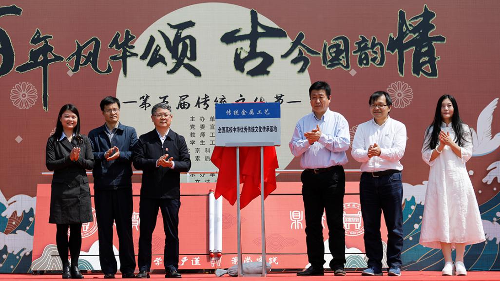 学校发挥科技史等学科优势,统筹人文素质教育中心、设计系、高工学院等资源,建设传统金属工艺传承创新基地,获评全国高校中华优秀传统文化传承基地,臧勇校长、潜伟老师、王鹂老师、章东辉老师、赵志毅老师和覃京燕老师在开幕现场为基地揭牌!