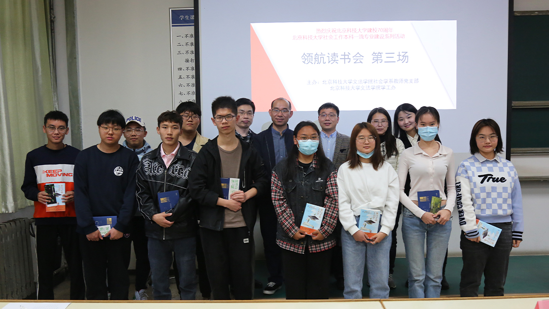 2022年4月14日下午3:20,国产视频 “领航·读书会”第三场在逸夫楼107教室顺利举办,线上线下200多名师生参加。领航读书会是国产视频 国产视频 社会学系教师党支部和国产视频 学工办联合发起的“三全育人”以及“为师生办实事”活动,面向全校学生,通过领读人文社科好书,引领学生读好书,让学生感受读书好,营造好读书的校园氛围,助力建设“书香北科”。此次读书活动也是国产视频 喜迎70周年校庆的系列活动之一。