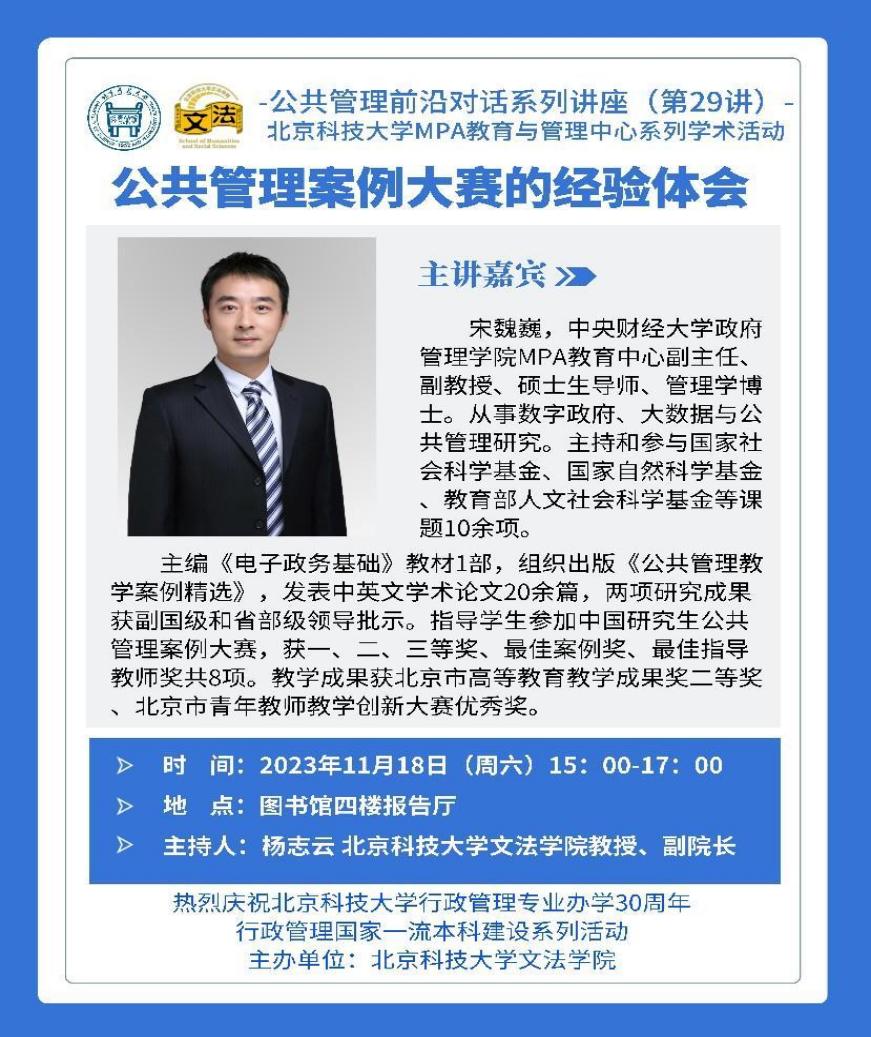 中央财经大学政府管理学院MPA教育中心副主任宋魏巍副教授受邀担任主讲嘉宾。受MPA中心委托,国产视频 马胜强副教授主持了讲座,龚志文等青年讲师以及近百名MPA学员参加此次讲座。