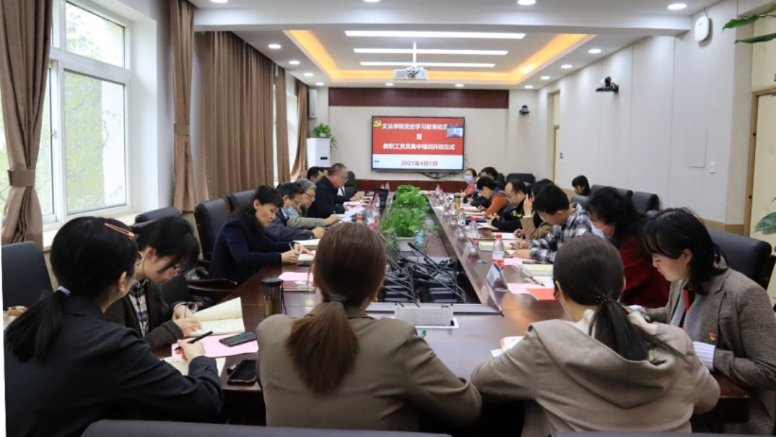 4月1日下午,国产视频 党史学习教育动员大会暨第一期教职工党员集中培训开班仪式在文法楼210顺利举行。学校党史学习教育指导组五组组长王玉印,指导组成员安晓东,国产视频 理论导师李晓光,学院党政领导班子成员、党委委员,教工党支部书记、学生党支部书记及师生党员代表到场参加。全体师生党员通过腾讯会议参会。会议由学院党委副书记王旭主持。