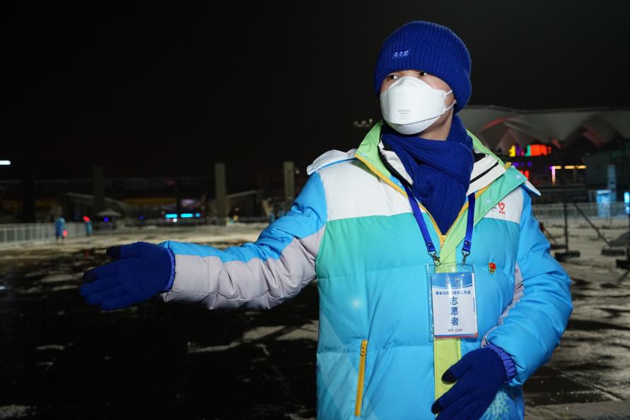 我做的最多的工作是停车场的引导员,负责引导观众到入场缓冲区,轮岗的安排使我们能体验到不同岗位的安排,非常高兴冬奥给了我们青年志愿者们一个展现志愿与奉献风采的舞台。当我们城市志愿者们列队门前,夹道欢迎的时候,一声声“观众你好””欢迎下次光临“平添了几丝冬日的温暖。这个冬天,有一群热爱志愿的伙伴们陪伴,很暖。