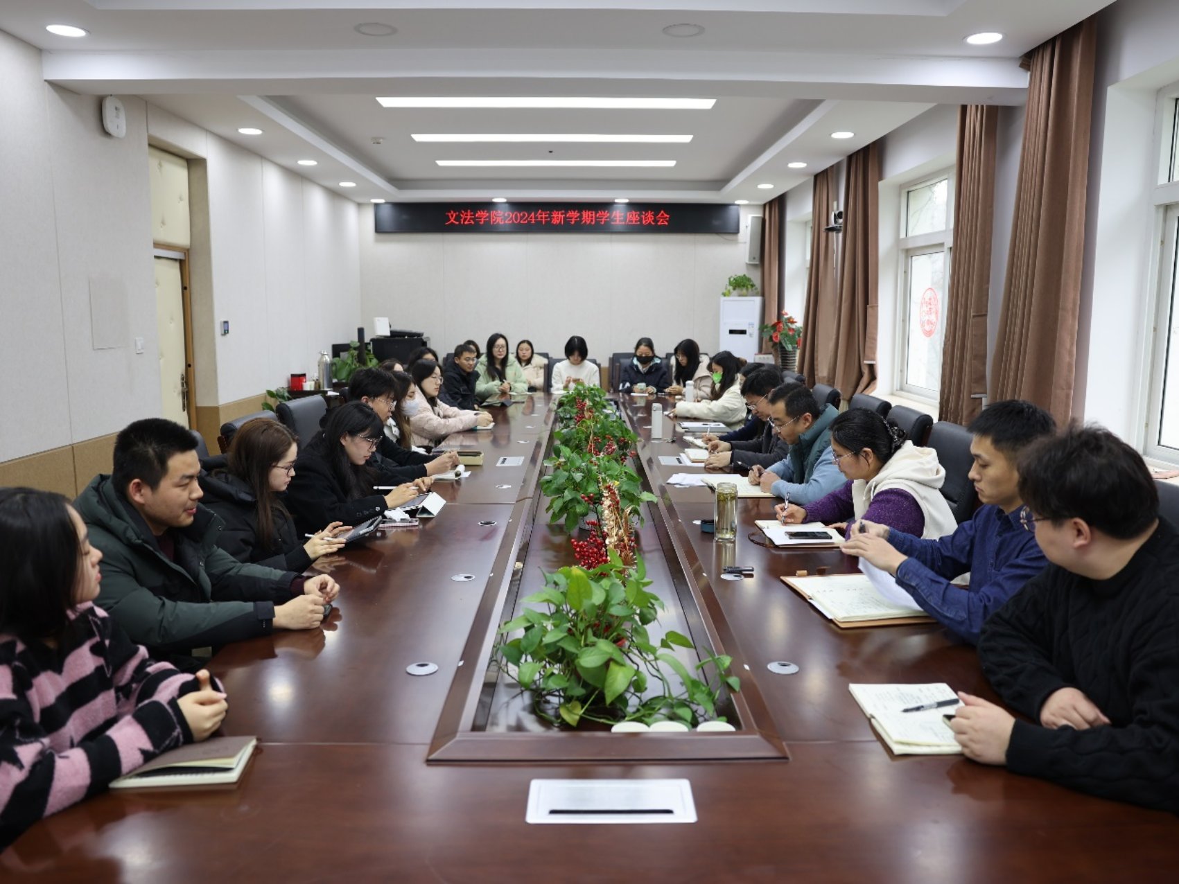 3月5日,国产视频 2024年春季学期学生座谈会于文法楼210举行。学院党委书记赵宝永,本科教学副院长王霁霞,研究生教学副院长许斌出席,与各年级学生代表进行座谈交流。会议由学院党委副书记、副院长王旭主持。