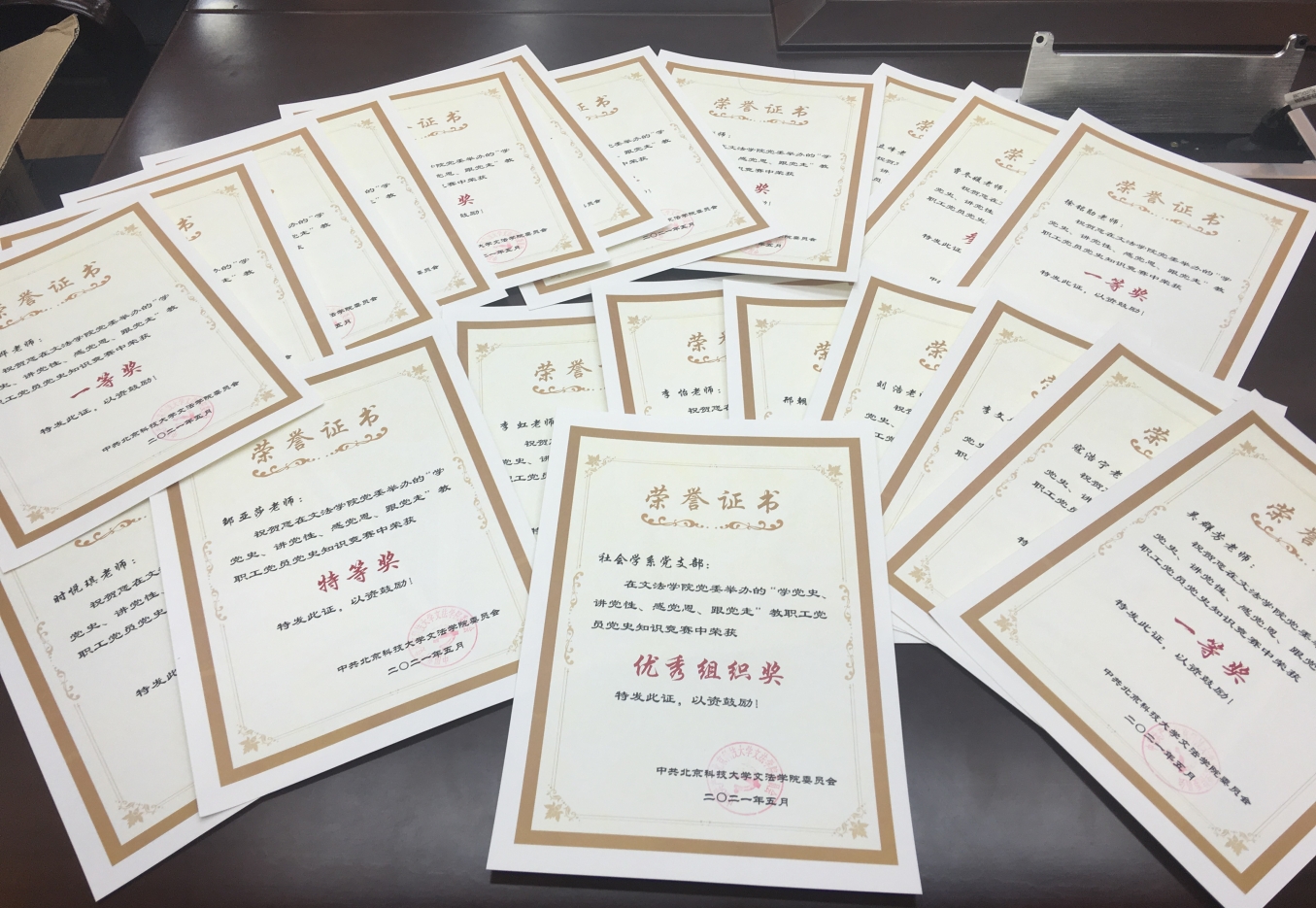 本次竞赛设置单选题和多选题,国产视频 各教工党支部在各支部书记的带领和号召下,积极参加、踊跃答题,展示了过硬的理论素质和良好的精神风貌。经过学院党委统计,评选出了特等奖3名、一等奖4名、二等奖6名、三等奖4名、参与奖3名,社会学系党支部获优秀组织奖。6月3日,国产视频 党委书记魏增产在文法楼210为获奖个人及组织颁奖。