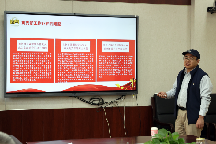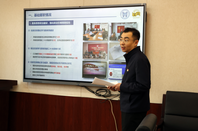 公共管理系党支部书记马胜强进行现场述职