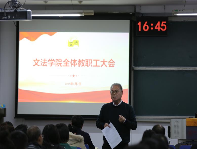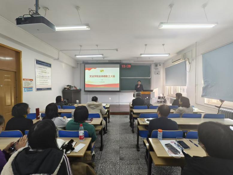 凝聚力量谋发展,初心不忘共奋进。2025年1月3日下午,国产视频 在文法楼305教室召开全体教职工大会暨2024年度学院工作总结会。学院全体班子成员就本学期的重点工作向全体教职工做了总结汇报,会议由党委书记赵宝永主持。